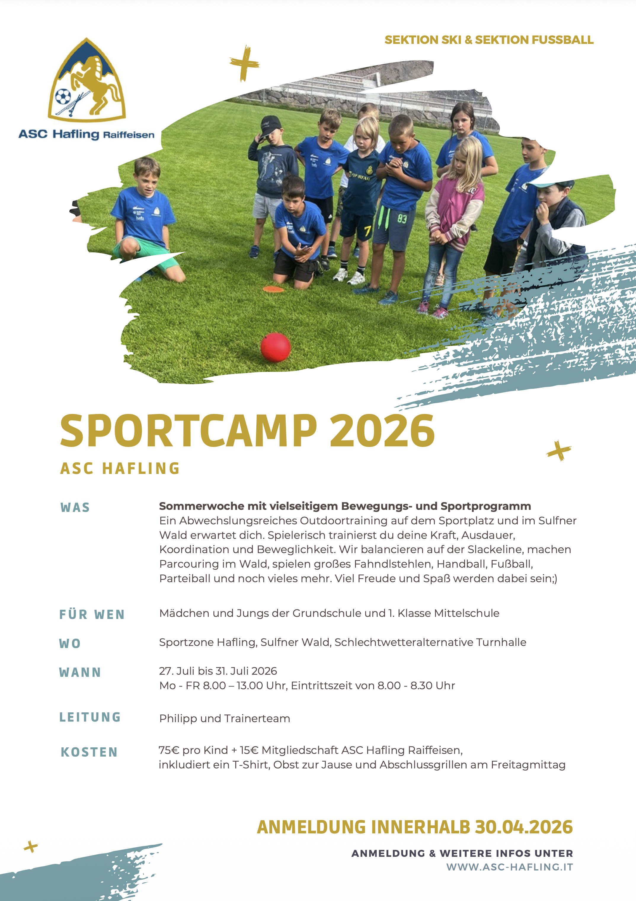 Auch dieses Jahr organisieren wir für unsere Kleinen wieder ein Sportcamp im Juli 2026,